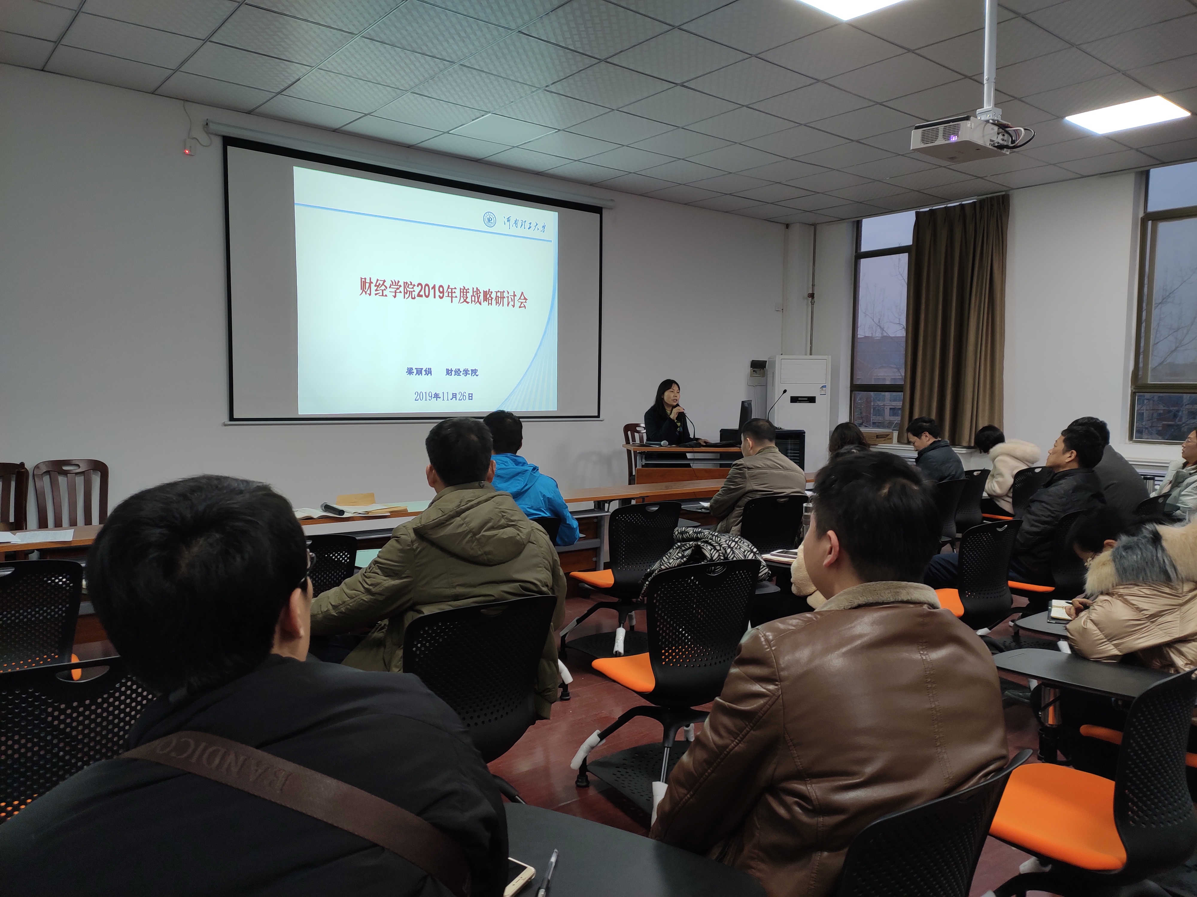 11月26日下午,为深入贯彻落实校、院两级关于“不忘初心、牢记使命”主题教育部署,根据《财经学院2019年发展战略研讨会工作方案》,我院在院楼1404会议室成功召开财经学院发展战略研讨会。会议由院长梁丽娟主持,学院部分校友、学生代表及全体教职工参加。