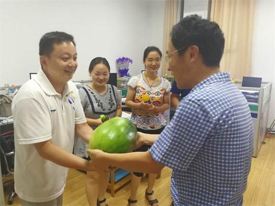 7月19日,我院工会主席辛文昉带领党政办工作人员到学院各办公室慰问暑期坚守工作岗位的教职工。