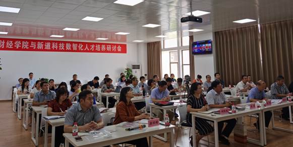 9月11日上午,财经学院与新道科技股份有限公司数智化人才培养研讨会在财经虚拟仿真实验室1308召开,我校副校长张锟、教务处原东方副处长、招生就业处阎秋凤副处长出席会议,新道科技助理总裁刘锦、中原区总经理张林峰出席会议,财经学院各专业负责人及专任教师参加了会议。会议由财经学院院长梁丽娟主持。