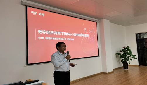 新道科技助理总裁刘锦作了“数智经济背景下商科人才的培养和探索”专题报告,分享用友助力企业数智化转型的案例,以及新道科技在数智化人才培养领域的探索。刘锦先生结合数智化人才培养的特点,从人才培养设计、课程体系规划、师资能力赋能等方面,介绍新道的数智化人才培养路径和方法,期望校企双方共同培育创新型复合型应用型人才。