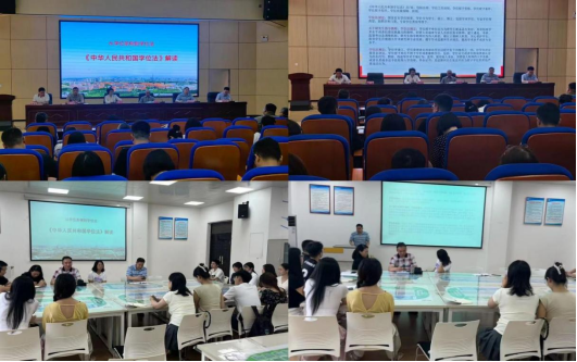 为深入贯彻国家教育政策,提升我院学位授予工作的规范性和科学性,5月21日下午,我院分别组织了全体教师和研究生学生代表进行了《中华人民共和国学位法》(以下简称《学位法》)专题学习活动。