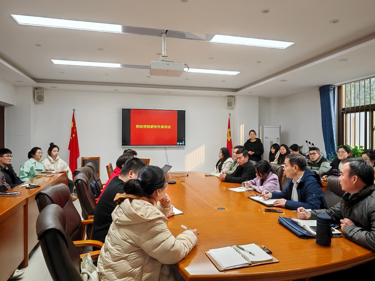 为加强研究生课程教学质量监控,规范培养过程管理,深入了解研究生的学习生活情况和思想状态,11月19日下午,我院于经管楼2102会议室召开研究生座谈会。副院长任长江、金融专硕学位点负责人郭明杰、研究生秘书刘玉朋、研究生辅导员及各年级全日制研究生代表参加了会议。会议由副院长任长江主持。