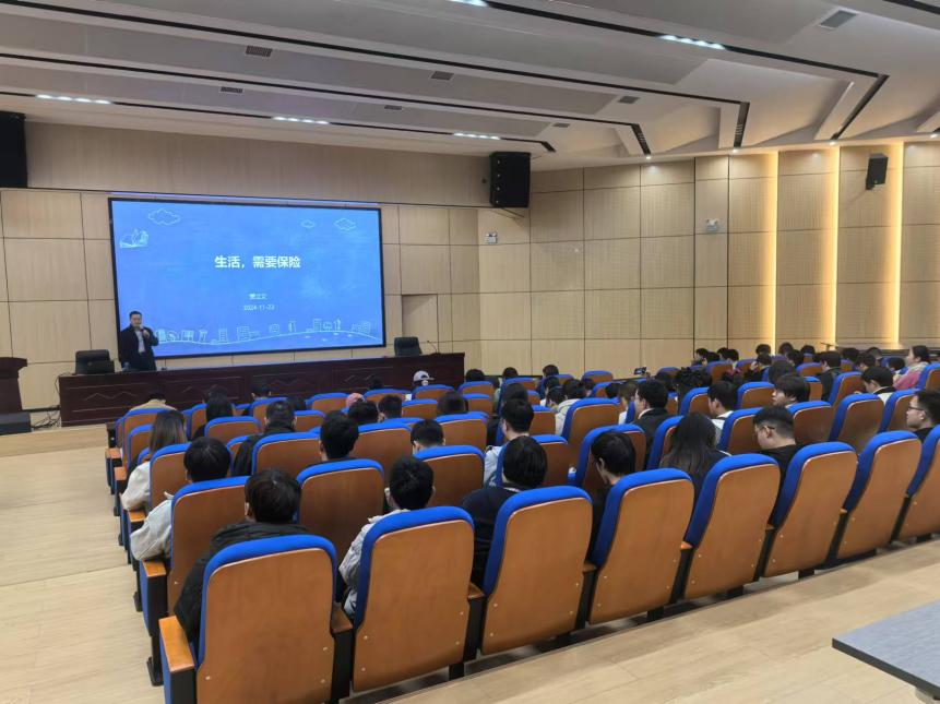 讲座中,贾经理围绕保险的起源、生活中的风险与保险、保险发展趋势及应对策略三个核心议题展开。他首先带领大家追溯了保险的起源,指出了保险在经济社会中发挥着风险管理、社会保障、经济发展和社会管理等多重作用。接着又通过一系列生动的案例,给大家讲述了保险在应对生活中的风险、保障个人和家庭财务安全方面的重要性,提醒大家要树立正确的保险观念。最后又分析了目前保险行业的发展机遇,为在场的同学们提供了宝贵的就业建议,指出了保险行业未来的就业方向。
