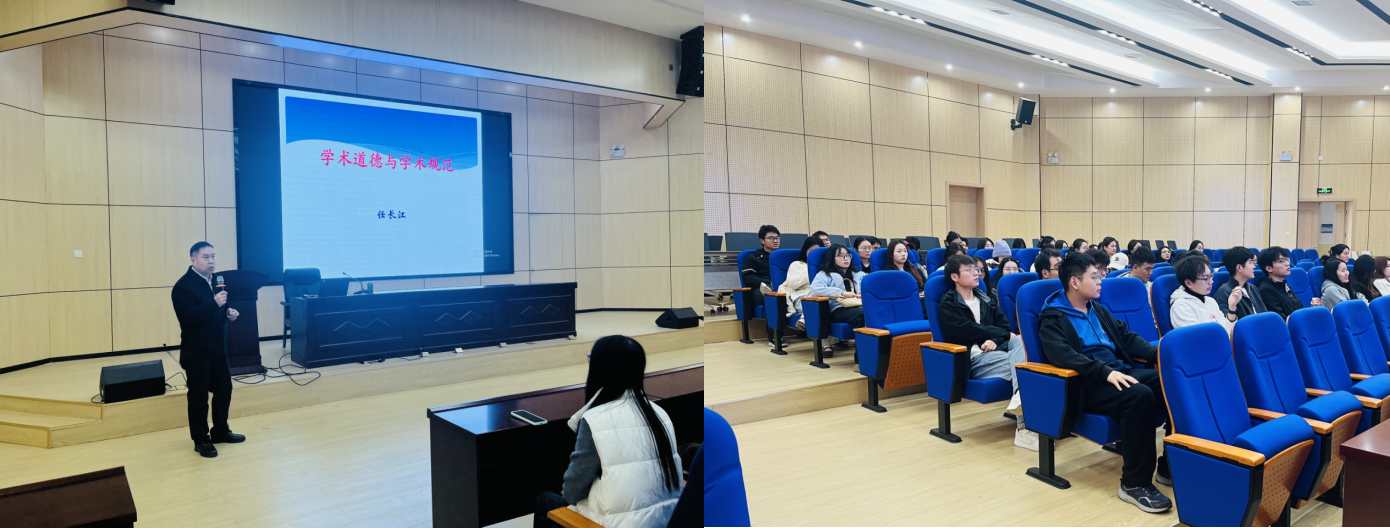 为引导2025级研究生树立严谨治学态度、筑牢科学道德防线,营造风清气正的学术风气,11月15日下午,我院于经管楼尚为学术报告厅举办了以“科学道德与学风建设”为主题的专题报告会。会议由副院长任长江主讲,2025级全体研究生参加。