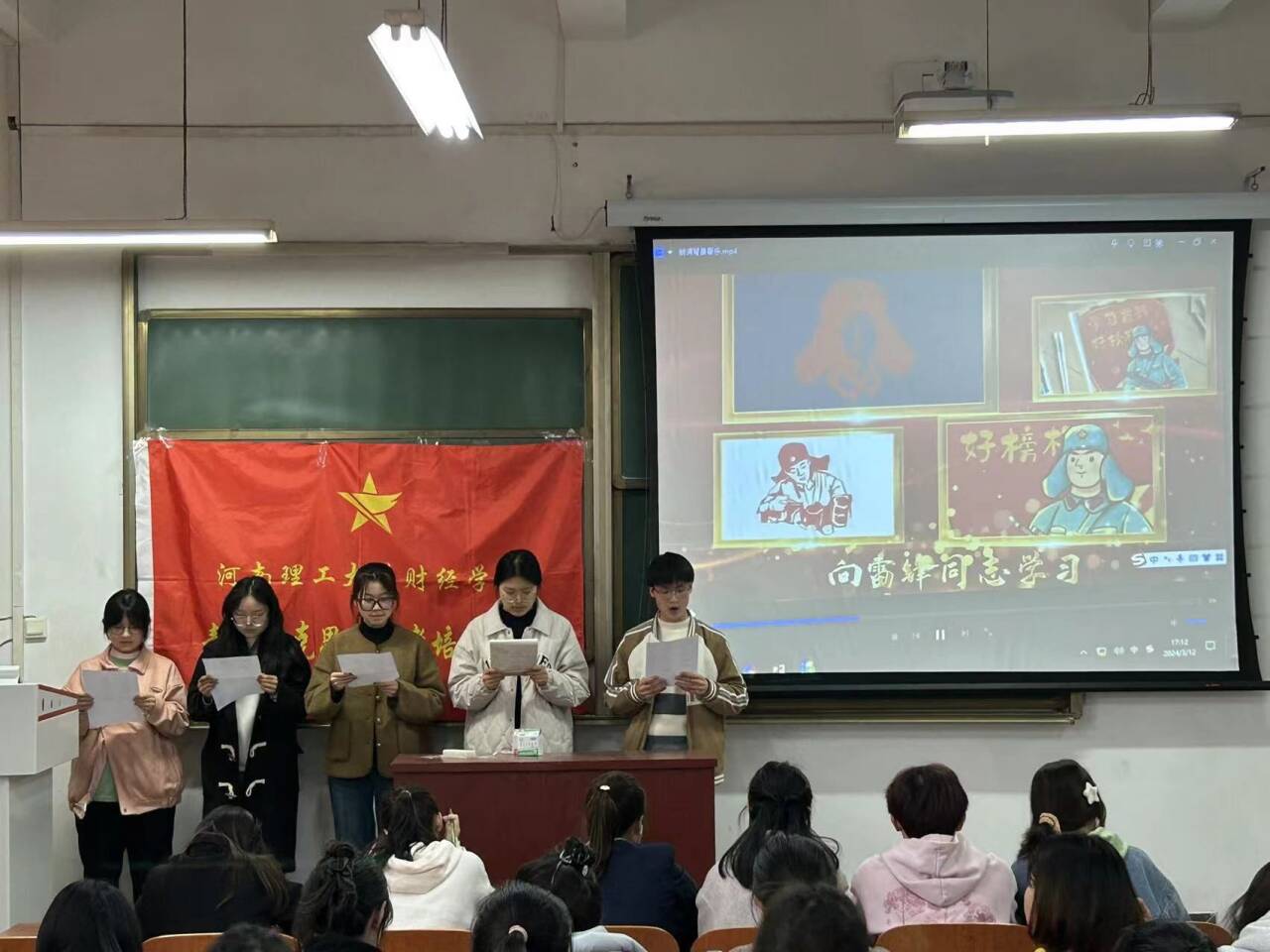 为全面学习贯彻习近平总书记关于深入开展学雷锋活动的重要指示精神,深刻把握雷锋精神时代内涵,传承和发扬雷锋精神,营造和谐互助、团结友爱的良好氛围,财经学院团委办公室于3月12日在经管楼1212组织第四期青马班学员开展“学雷锋、树新风、促团结”雷锋月主题活动。