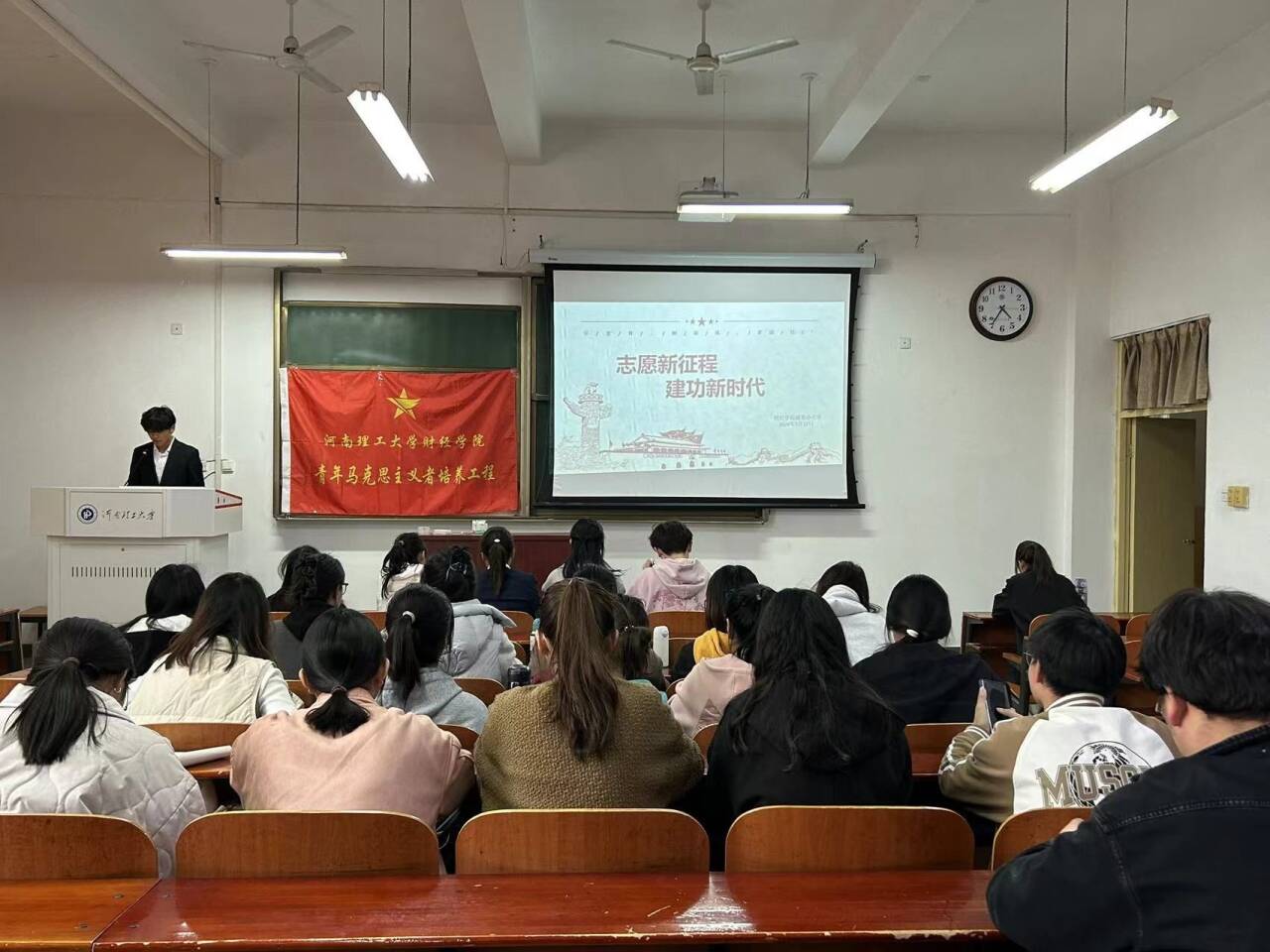 活动伊始,主持人从雷锋生平事迹出发,由党和国家领导人对雷锋同志的高度评价和精神阐释入手,向全体青马班学员宣扬了雷锋同志的优秀精神,号召广大青马班学员学习践行雷锋精神。随后进入小组展示环节,学员们通过主题演讲、诗歌朗诵、集体倡议等多样的形式进行展示,推动雷锋精神根植于心。其中,第三组以“忆雷锋,树新风”为题进行诗歌朗诵,激励大家以实际行动践行雷锋精神,深切地表达了要做雷锋精神传播者的坚定信念。最后一组学员采用朗诵和倡议相结合的形式,以日常生活为切入点,倡议大家从小事做起,向雷锋同志学习,引导大家将雷锋精神内化于心,外化于行。活动接近尾声,各小组成员积极参与、认真准备,用生动的语言、鲜活的事例,向大家展示雷锋同志的无私奉献、助人为乐的高尚品质,让学员深刻感受到雷锋精神的伟大力量,促进了各学员之间的团结协作,对提高青马班学员的奉献意识和增强社会责任感有着重要意义。