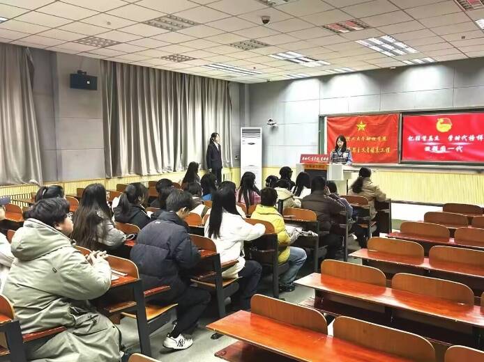 为深入学习贯彻习近平新时代中国特色社会主义思想和党的二十大精神,贯彻落实团十九大精神,引导团员青年坚定“四个自信”,财经学院团委办公室邀请“新时代·青年说”宣讲团于12月26日在经管楼1203教室进行宣讲活动。