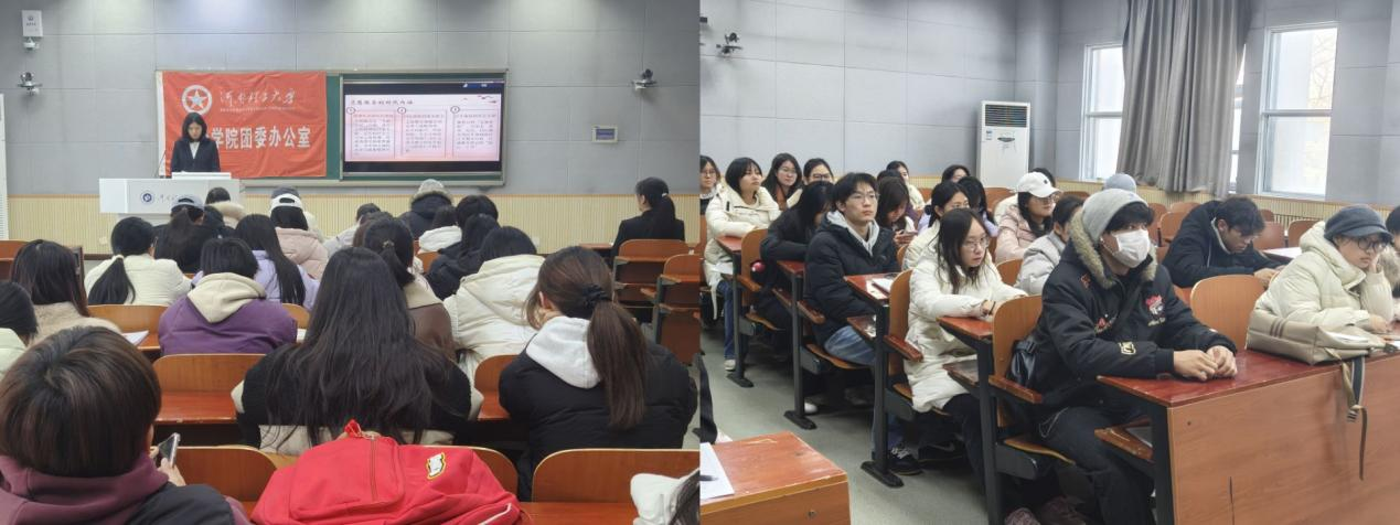 为深入落实关于学习宣传贯彻习近平总书记致中国志愿服务联合会第三届会员代表大会重要贺信精神的要求,引导青年坚定理想信念,传承志愿服务初心,财经学院团委办公室于2025年12月29日在经管楼1203教室举办“学习贺信精神,争做志愿先锋”主题团日活动。