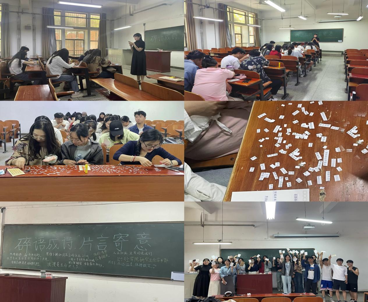 为探索语言艺术的无限魅力,激发同学们对美言美句、诗词歌赋的热爱,进一步促进同学们之间的文化交流,5月15日下午,学院研究生会学术部举办的“碎语成诗,片言寄意”诗歌拼接活动在1111教室成功举行,我院若干名研究生参与了此次活动。