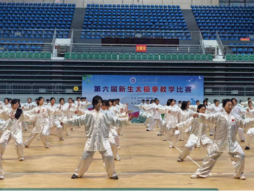本次比赛以“陈氏太极拳精要十八式”为比赛项目,以学院为参赛单位,共有来自不同学院的20支代表队同台竞技。这些队伍均由新生组成,共计2000余名同学参与其中。比赛现场气氛热烈,我院代表队迈着整齐划一、扎实沉稳的步伐进入赛场,展现出中华武术精神的独特魅力。我院代表队自组队以来,始终秉承“以赛促学,以赛促练”的原则,队员们克服种种困难,利用课余时间坚持每日训练,经过不懈努力,同学们的太极拳技艺水平得到了显著提升。在比赛中,我院太极拳代表队展现出了精湛的技艺和良好的精神风貌,他们以稳定的发挥和默契的配合,标准地打出了太极拳的各种招式,在众多优秀代表队中脱颖而出,赢得了现场观众和评委的一致好评。