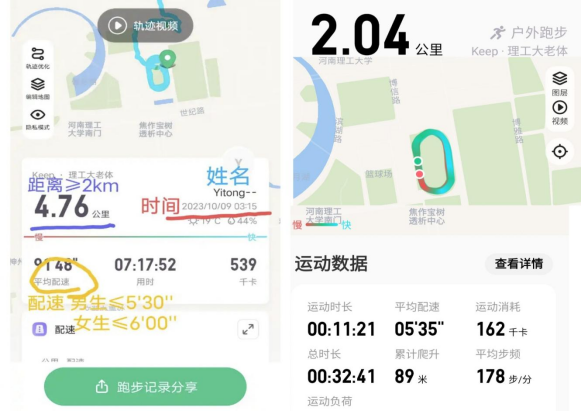本次活动采用线下跑步,线上打卡的方式,同学们通过扫码进入打卡页面,发送跑步记录截图。活动一经开展,同学们就踊跃报名,最终有370余人参加了此次活动。同学们于操场上,或迎接朝阳,或顶着秋日的暖阳,或向着黄昏的夕阳,跟随着时间的步伐,誓要与它比较一番。当同学们站在属于自己的跑道,随着手机发出的倒计时起跑,他们迈着坚定的步伐,目光如炬,心中计算着自己的配速和终点的距离。在最后一圈时爆发出自己的潜能,力挽狂澜,将配速达到限定目标内。经最终统计,本次活动共有208名同学成功打卡8天。跑步打卡活动在大家的共同努力下圆满落幕。
