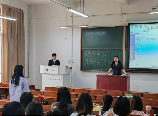 活动按我院专业分类分为四个活动现场,分别为国际贸易、财务管理、金融和会计考研交流会。活动伊始,主持人上台介绍交流会流程,接着进入报告交流阶段,每个专业各有三名成功上岸的学长学姐进行经验分享。学长学姐们知无不言,言无不尽,全方面系统化地向我们讲解了考研的过程及价值,并细致地分享了自己的学习方法、备考计划和学习心得,同学们听得目不转睛。然后进入了互动提问环节,同学们都积极主动地踊跃提问,学长学姐们依据问题结合自身实际有针对性、有代表性地对同学们的问题进行一一解答交流。最后,主持人上台向分享经验的学长学姐们致谢并宣布本次活动圆满结束。