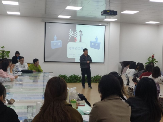 通过这场辩论赛,不仅提高了同学们语言组织能力和思维反应速度,还带动了同学们考研的积极性,效果显著。
