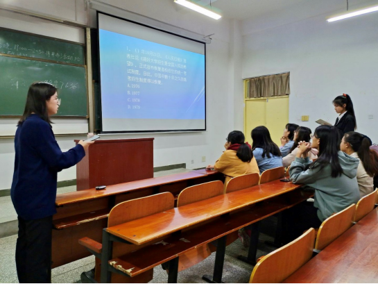 为深入学习贯彻习近平新时代中国特色社会主义思想,使广大学生更好的参与“四史”教育活动,11月3日下午,由我院学生会主办、院学生会科创学习部承办的“四史”知识竞赛于经管楼1205、1201教室成功举行。此次竞赛由王柏文、段肖涵、张旭都担任主持人,我院二百余名学生参与了此次竞赛。