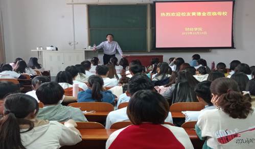 10月19日,财经学院在经管楼1212教室举行“财经学院优秀校友”座谈会。我校1999级校友黄德金在毕业二十周年之际返回母校和学弟学妹进行了亲切交流,财经学院会计系主任罗斌元主持本次会议、2018级财务管理专业全体学生参加了此次座谈会。