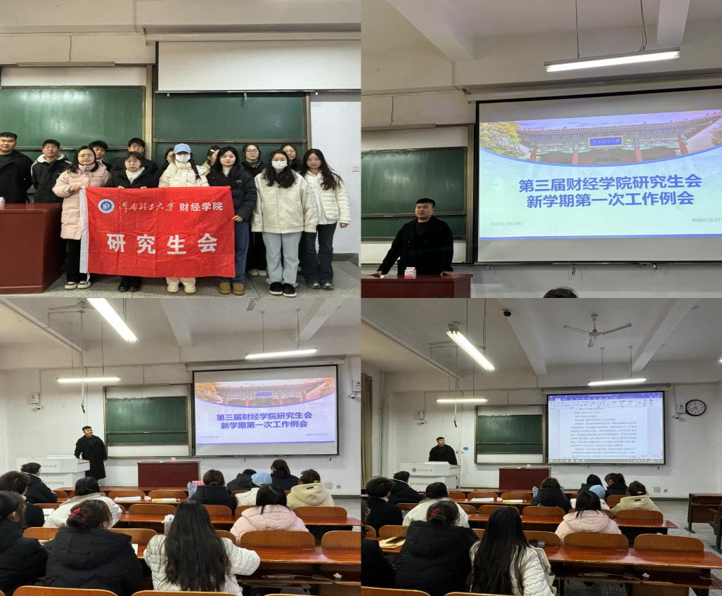 为进一步推进我院研究生会工作有序开展,提升组织凝聚力和向心力,财经学院第三届研究生会于2月24日下午在经管楼1211教室成功举办了新学期的第一次例会。会议由研会执行主席邹佳衡主持,学院研究生会全体成员参加会议。