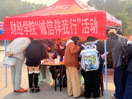 为大力弘扬诚实守信优良传统,积极培育和践行社会主义核心价值观,营造“人人讲诚信、事事守信用”的良好氛围,财经学院学生会学习部于10月26日在学苑餐厅东门帐篷处举办了以“以诚治学筑学风,以信立身逐理想”为主题的“诚信伴我行”活动。