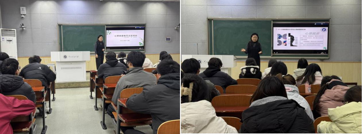 本次班会聚焦心理健康标准、心理危机应对、常见心理问题解决及心理咨询资源四大核心,为同学们开展实用温暖的心理成长指导。班会上,吕淑丽老师首先明确心理健康是身体、心理、社会适应完好且积极情绪增多的状态,详解大学生智力正常、适应力强等标准;接着讲解心理危机的诱因、识别方法,提醒关注自身及他人异常并及时求助;随后结合案例,针对人际、情感、学习等常见问题及新生适应、毕业生择业等阶段困惑,给出换位思考、制定学习计划等应对策略;最后介绍学校心理咨询中心预约方式、联系电话等资源,强调“助人自助”理念,鼓励同学们主动寻求专业支持。同学们纷纷表示,今后将更加重视自身心理健康,主动运用所学技巧调节情绪,在遇到难以解决的心理困惑时,勇敢寻求专业帮助。