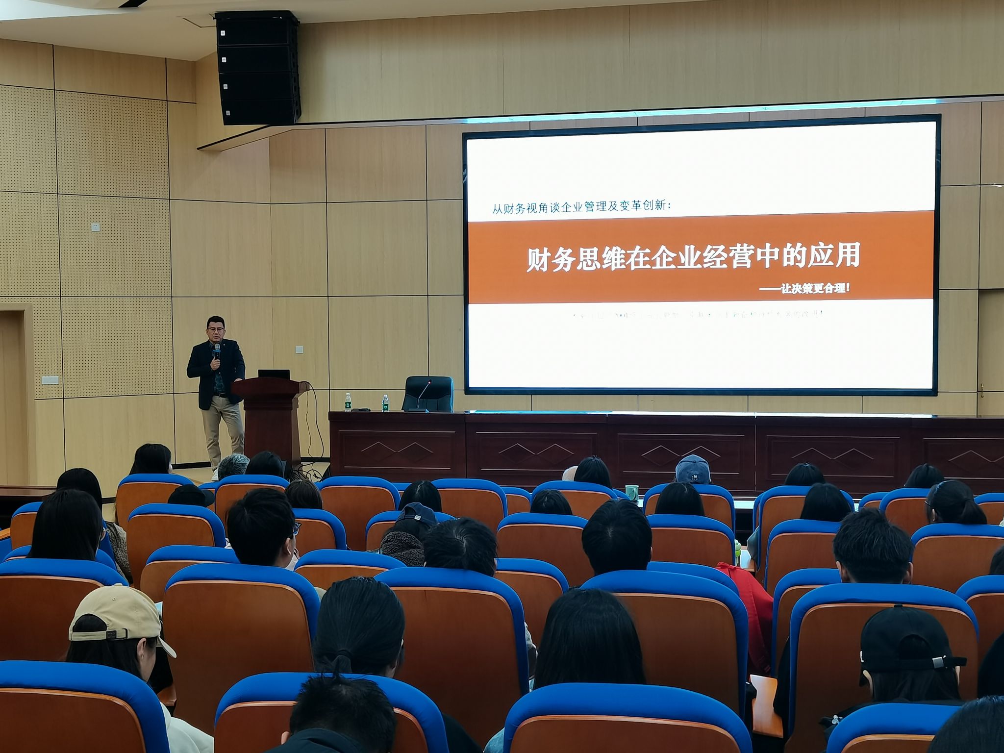 程乾校友的专题报告聚焦于以下两个主题:“财务思维在企业经营中的应用——让决策更合理”“行业洞察:外贸人员从业环境及必备技能”。在首场报告中,程乾校友从财务思维出发,深入剖析了企业组织管理的九大体系及财务思维在其中的应用场景。他强调,财务管理是企业实现精益管理、规范经营、科学发展的重要管理手段,管理层特别是高管要树立敏锐的财务思维,通过精细化的财务管理,推动企业变革与创新。在第二场报告中,程乾校友将焦点转向外贸行业,为学生们深入剖析了外贸人员的从业环境及必备技能。他提到,外贸行业是一个充满机遇和挑战的领域,从业人员需要具备良好的素质和技能以应对各种复杂情况。