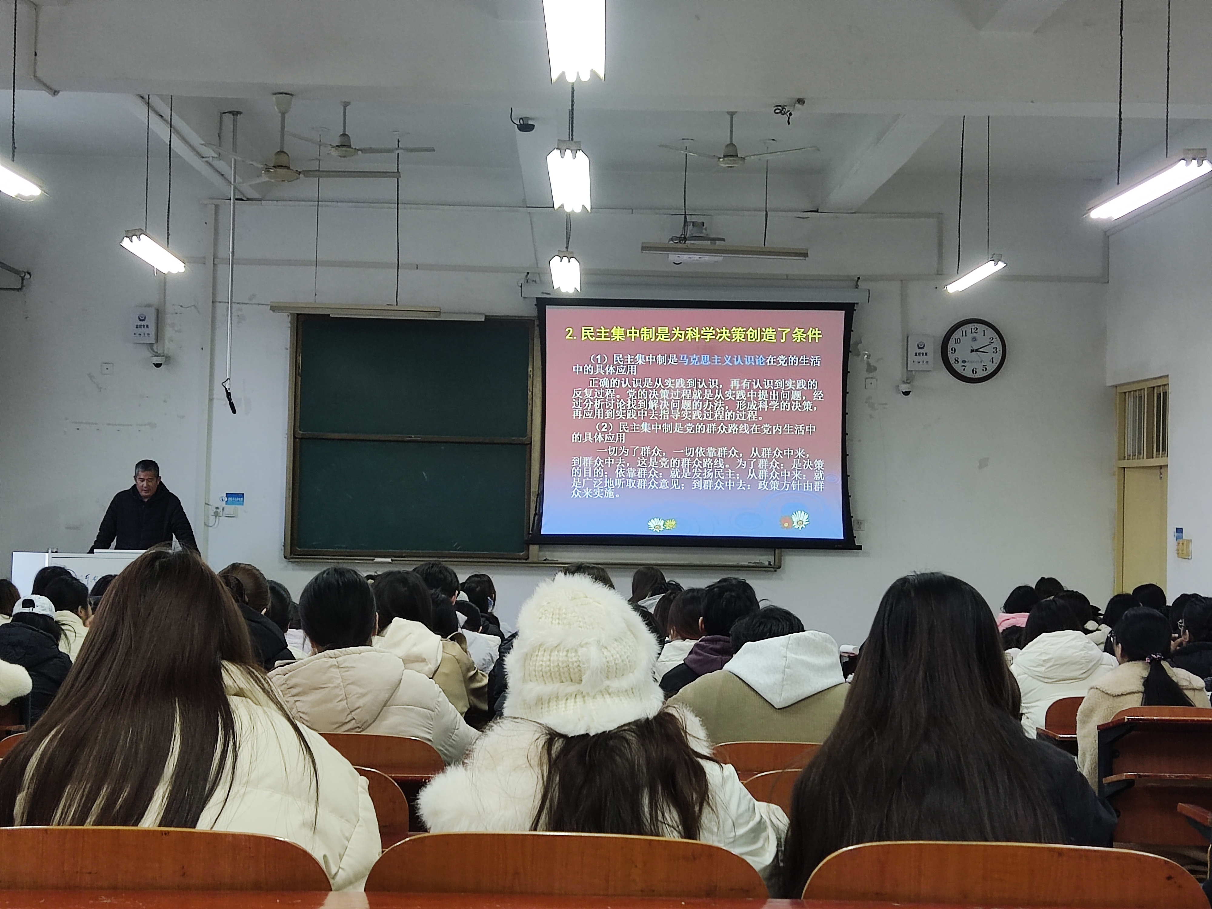 李桂林开篇从民主集中制的由来展开,指出其随无产阶级政党发展逐步完善,是党的根本组织制度基石。在解析制度实践价值时,他重点阐述其对科学决策的赋能作用:一方面,它是马克思主义认识论在党内的应用,党的决策遵循“实践——认识——再实践——再认识”的辩证过程;另一方面,它是党的群众路线在党内的体现,通过广泛吸纳意见、集中研判形成并落实决策。结合学院实际,李桂林剖析了民主集中制的实践场景:学院党委在学风建设中,先征集师生意见,再经党政联席会确定年度方案,使学风建设取得显著成果;学生党支部在组织生活会上,先让成员充分发表观点,再形成志愿服务等行动方案,让组织生活兼具民主活力与集中效能。