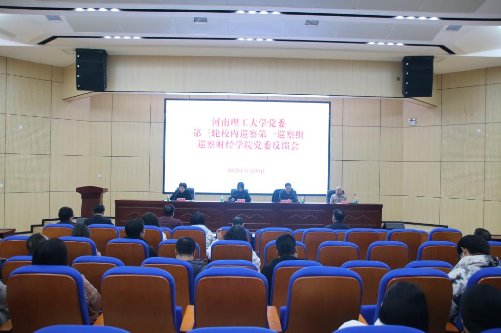 11月30日,校党委第三轮校内巡察第一巡察组巡察财经学院党委反馈会在尚为学术报告厅召开。校纪委(专员办)综合室主任郭兰英、第一巡察组组长徐亚富,财经学院领导班子成员、党委委员、党支部书记、系室(中心)负责人以及教授、民主党派、师生代表参加会议。财经学院党委书记王景琳主持会议。