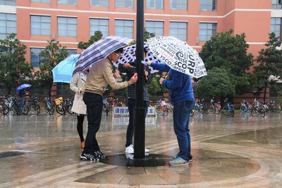 活动中,预备党员以身作则,积极投身志愿活动。首先,他们冒雨来到图书馆,清理灯柱上的小广告,经过一个多小时的努力,众多杂乱的小广告被清理得干干净净。紧接着,开始擦拭灯柱,他们左手撑伞,右手拿着清理工具,不停地工作着,尽管很累却开心地笑着,雨伞下忙碌的身影生动地显示了服务群众的奉献精神,他们认真积极的态度受到了同学们的好评,引来了很多赞叹的目光,同时也感染一些同学热心地参与进来,共同清理小广告,擦拭灯柱。最后,此次活动在全体预备党员以及同学们的帮助下圆满完成。