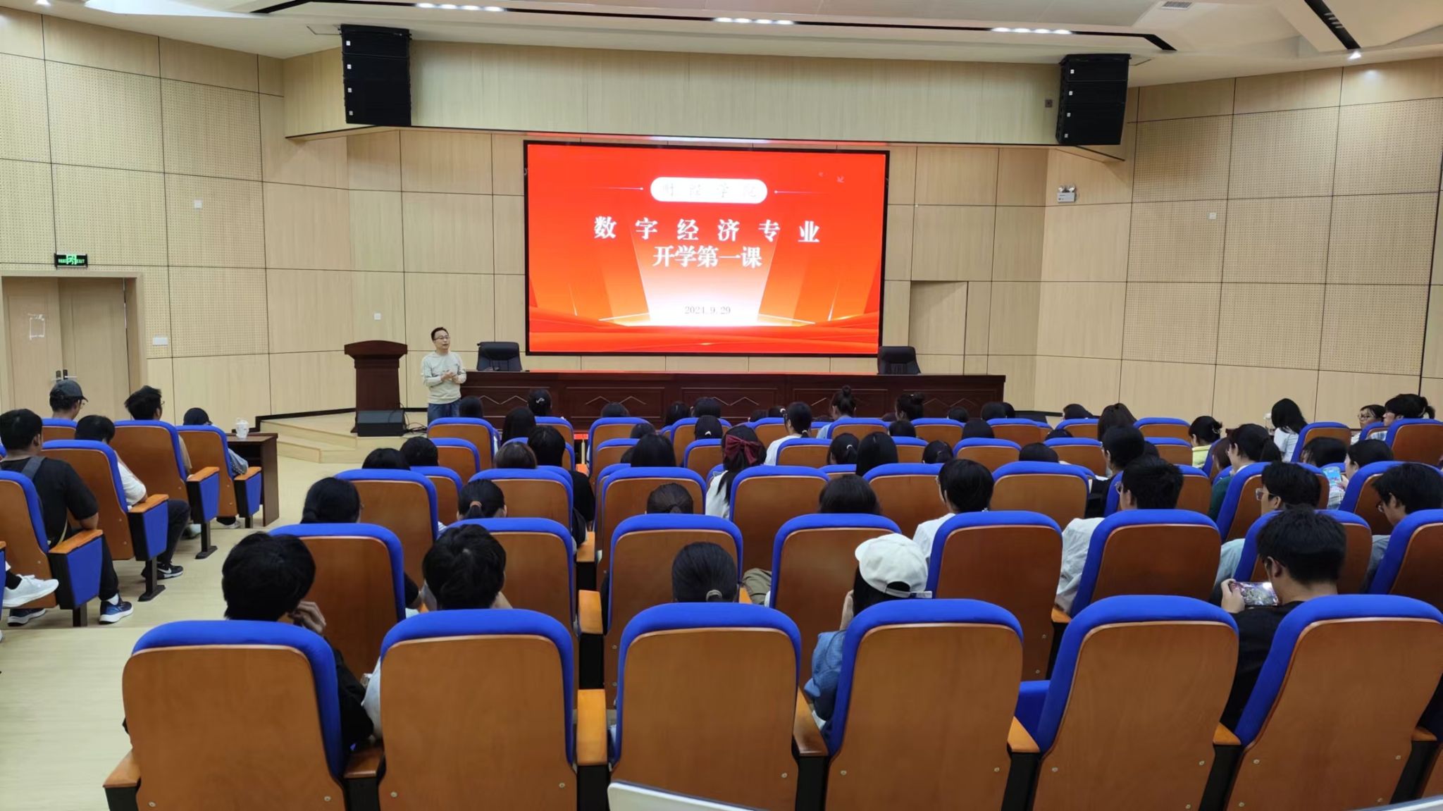 为培养数字经济系新生专业兴趣,夯实专业素养,9月29日上午,数字经济系党支部在尚为学术报告厅开展专业教育活动,共同学习由全国数字经济教育发展联盟主办、中央财经大学中国互联网经济研究院及经济学院承办的“2024年数字经济专业开学第一课”,数字经济专业全体师生参加。这是数字经济系党支部建设助力专业发展的又一举措。
