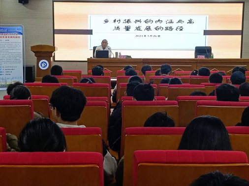 3月26日下午,由党委研工部主办、财经学院承办的第107期研究生“知行讲坛”活动在国家重点实验大楼345会议室隆重举行。河南大学乡村振兴研究院院长宋丙涛教授受邀为我校师生作题为“乡村振兴的内涵与高质量发展的路径”讲座。讲座由财经学院副院长任长江主持,全校近两百名研究生参加。