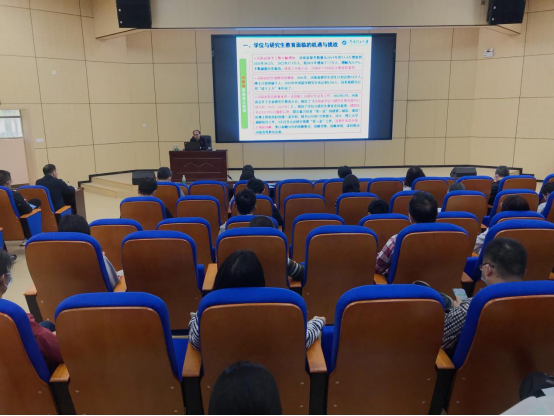 报告会上,陈俊杰院长围绕新时代研究生导师的责任与担当,从“学位与研究生教育面临的机遇与挑战”,指出了全国和河南省学位与研究生教育机遇与挑战并存的局面,深刻分析了我校研究生招生以及培养工作的现状,强调要高度重视研究生管理队伍的建设;从“研究生培养过程管理与质量保障”提出学院在研究生培养过程中,要制定体现学科特色的课程,专业学位研究生要注重以原创性和精品案例库作为重要支撑,同时对研究生在论文写作和成果产出方面应重点关注的工作做了详细的分析;从政治素质过硬、师德师风高尚、业务素质精湛对研究生导师提出了新的要求,明确了导师在研究生培养过程中的职责;接着,就我校研究生毕业论文中出现的问题与各位导师进行了探索与交流。最后陈俊杰院长勉励各位研究生导师:做学生的良师益友,是一种工作的态度和境界。
