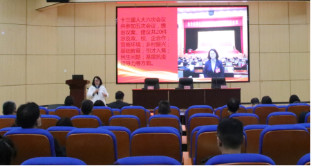 5月10日下午,我院副教授、焦作市第十三届人大代表、民盟河南理工大学副主委何苗老师在尚为学术报告厅作了题为《勤勉尽责 服务社会》的专题报告,学院全体教职工参加。会议由院长梁丽娟教授主持。