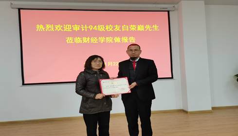 11月22日下午,财经学院在经管楼1308学术会议室举办了优秀校友白荣巅座谈会暨财经学院校友工作发展研讨会。座谈会特邀我院审计专业杰出校友、现任深圳市联谛信息无障碍有限责任公司副总经理 、CFO, MBA 导师白荣巅主讲,由王玉法老师担任主持人,我院副院长程明娥及部分导师出席了此次研讨会,我院百余名学生聆听了此次报告。