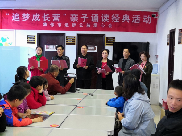 活动期间,少年们表现的很积极,纷纷上台进行诗词朗诵表演。他们用那稚嫩但又充满活力的声音朗读经典,听起来别有一番韵味。期间云舞歌艺术团的成员朗诵了《我骄傲,我是中国人》,语调激情昂扬,激发了我们的爱国之情。最后由志愿者们上台朗诵《沁园春.长沙》,语气铿锵有力,感情真挚。少年们都认真聆听朗诵,眼里充满对传统文化的喜爱。