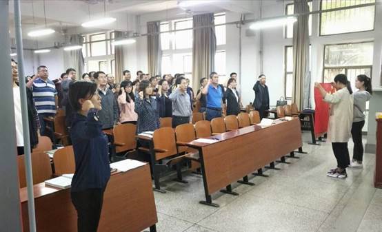 动员会上,财经学院全体教师面向国旗郑重宣读河南理工大学教师誓词,承诺“忠诚人民教育事业,贯彻党的教育方针”。全体党员同志面向党旗庄严宣誓,誓言增强“四个意识”、坚定“四个自信”、做到“两个维护”,始终忠诚于党、忠诚于人民。并集体观看了《2018感动中国人物——张玉滚》典型人物先进事迹和《贪欲之害》警示教育片。用真实鲜活的案例展开主题教育学习。