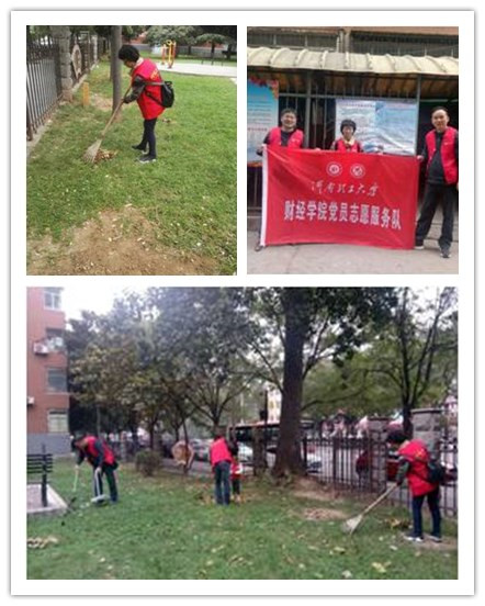 10月20日,国贸系教工党支部参加了大北院社区志愿帮扶活动。了解到社区辖内三个家属院只有一个保洁员,卫生清洁任务繁重,国贸系党支部主动承接了清扫草坪的任务。一大早,支部党员就从新校区赶到了活动现场,很快投入了紧张的清扫工作。经过一个多小时的努力,草坪变得干净了,清扫出来的落叶、垃圾堆了满满一垃圾箱。