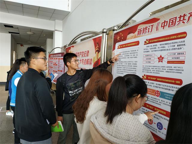 根据学校《2018年党风党纪教育月活动方案》工作要求,近日,我院精心制作了党风党纪展板在经管楼大厅将对新修订的《中国共产党纪律处分条例》进行了介绍、解读和展示,供学院师生观看学习。