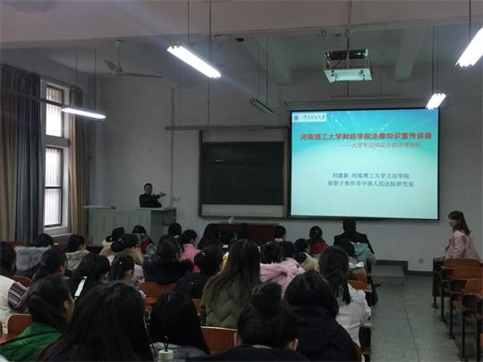 为提高我院师生学法守法的意识,11月30日下午,学院在经管楼1112教室举办了法律知识宣传讲。讲座由我校文法学院教师刘建新主讲,我院师生参与了活动。
