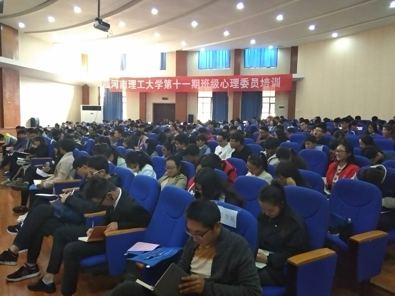 为深入推进和改善我校大学生心理健康教育工作,充分发挥班级心理委员的作用,完善我校四级心理健康教育工作网络,11月4日上午,由财经学院承办的我校第十一期班级心理委员培训班在经管楼一楼学术报告厅正式开班,安全科学与工程学院、能源科学与工程学院、资源环境学院等19个学院(南校区)的276名2017级班级心理委员参加了此次培训。