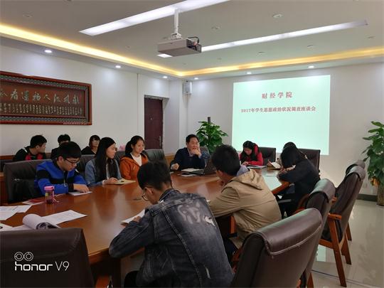 11月3日下午,我院在经管楼2102教室召开了思想政治状况调查座谈会。会议由党委副书记辛文昉主持,辅导员张贞和以及来自各专业年级的学生代表参加了座谈会。