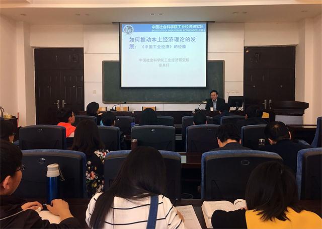 4月26日,中国社会科学院工业经济研究所研究员张其仔应邀莅院作《如何推动本土经济理论的发展》的学术报告。学院全体教师参加报告会。