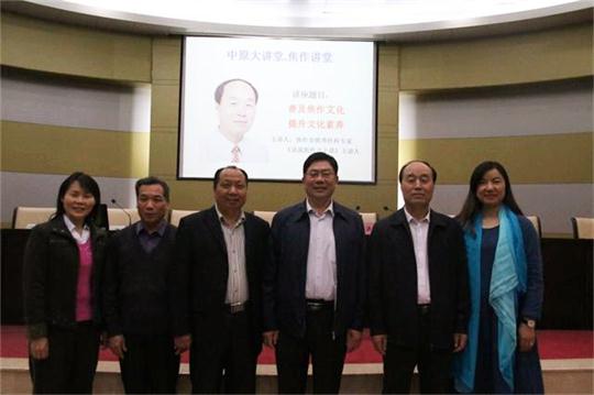 4月13日,由校学生工作部(处)主办、财经学院承办的河南理工大学2017年第二十八期“树人讲堂”在力行楼圆形报告厅举行。焦作市民间艺术家协会副主席、焦作市优秀社科专家王先鹏应邀作题为《普及焦作文化,提升文化素养》的主题报告。我校副校长张锟出席活动,财经学院200余名师生参加报告会。报告会由财经学院院长梁丽娟主持。