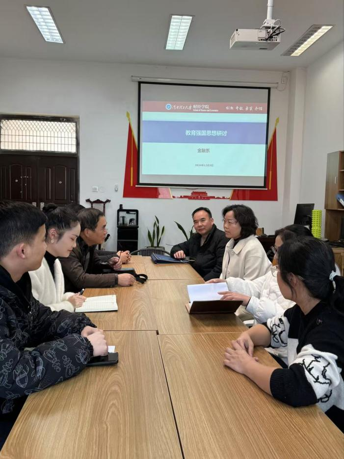 教育事关立德树人、引领科技创新、支撑城市发展,为现代化建设提供强有力保障。为全力落实高等教育综合改革各项任务,更好担当国家战略使命,更好服务教育强国建设。12月3日下午,金融系党支部于经管楼1402会议室开展关于“教育强国思想”研讨会。